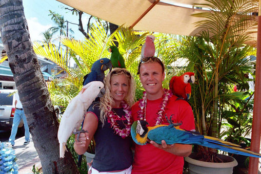 Meet Samson & Delilah. These birds live to like 73 currently 48 and have been here before the resort opened. Their wings are not clipped but they cannot fly because they haven't used them for too many years. They take them out each day. Delilah won't return to her cage until her water is cleaned it's funny see in video as she walks with keeper to get the water.